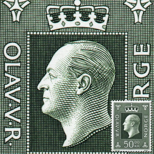 Znaczek obiegowy, na którym przedstawiono króla Olafa V.