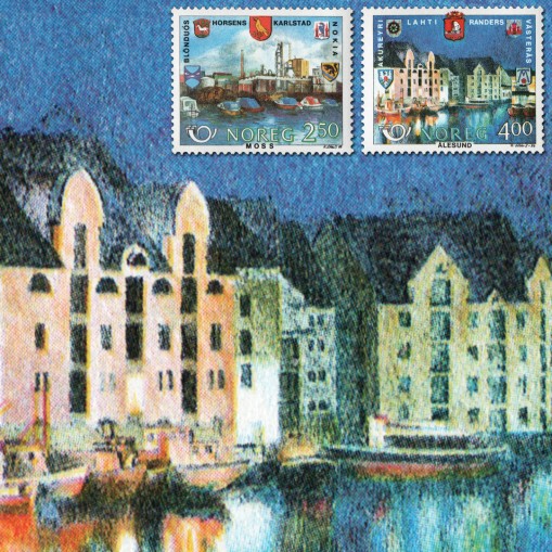 Na znaczkach widnieją miasta partnerskie Moss i Alesund.
