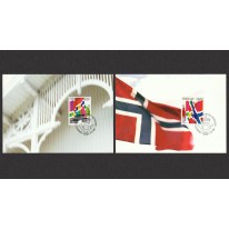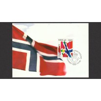 Znaczki na kartach maksimum upamiętniające zimowe igrzyska olimpijskie w Lillehammer.