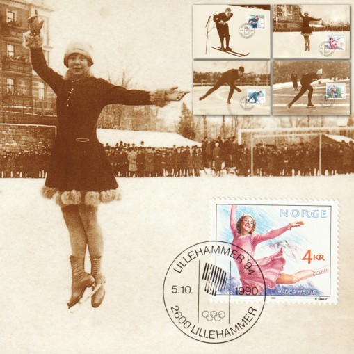 Na znaczkach widnieją norwescy złoci medaliści w konkurencjach łyżwiarskich i narciarskich w poprzednich latach: