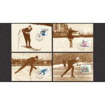 Znaczki na kartach maksimum zapowiadające zimowe igrzyska olimpijskie w Lillehammer.