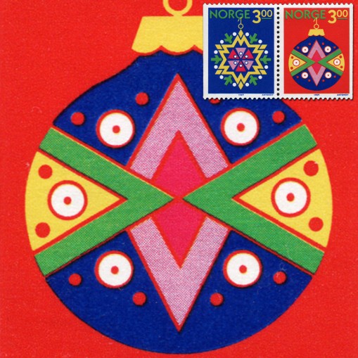 Na znaczkach widnieją ozdoby bożonarodzeniowe: gwiazda i bombka.