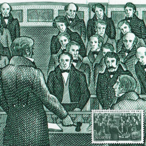 Na znaczku przedstawiono głosowanie w parlamencie.