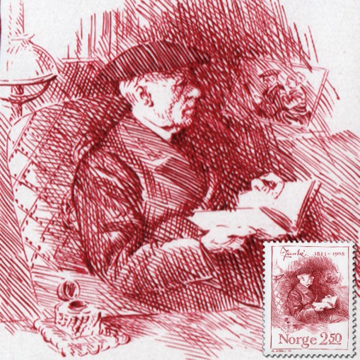 Znaczek upamiętniający 150. rocznicę urodzin pisarza Jonasa Lie.