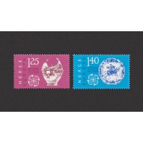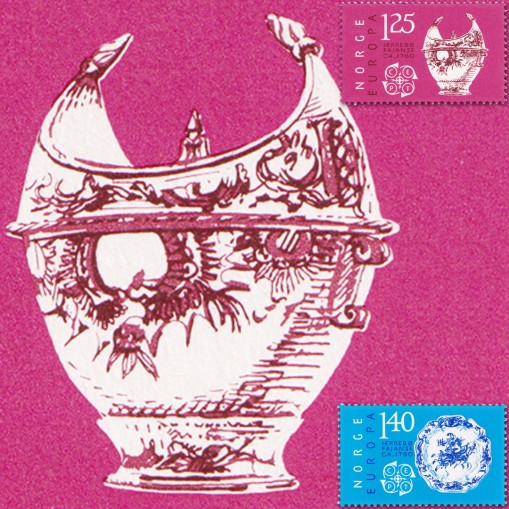 Na znaczkach przedstawiono wyroby ceramiczne z 1760 roku, wyprodukowane w fabryce Herrebøe pod Halden, kolejno: