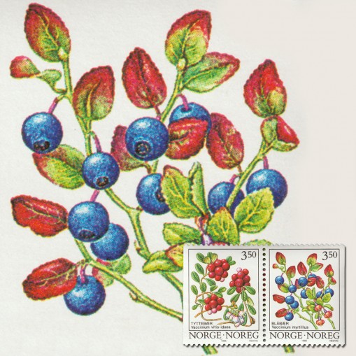 Na znaczkach przedstawiono dzikie owoce jagodowe, które występują w Norwegii, a są to:
