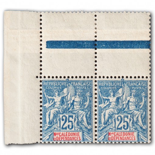 Parka pochodzi z narożnika arkusza. Walor posiada ślad po podlepce na rewersie marginesu (nie na rewersie znaczków).