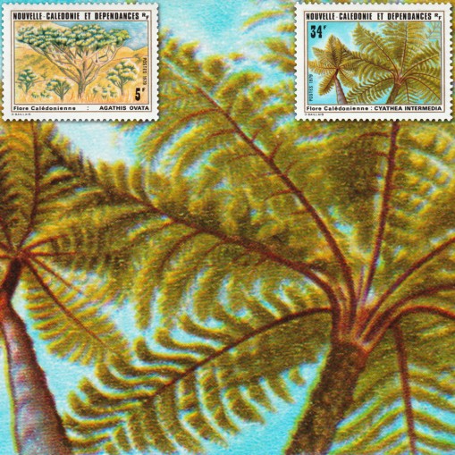 Na znaczkach widnieją następujące gatunki drzew, które występują w Nowej Kaledonii: