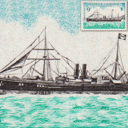 Znaczek wydany na Dzień Znaczka oraz z okazji pierwszej rocznicy regularnych rejsów morskich pomiędzy Marsylią i Numeą.