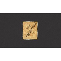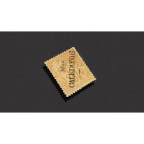 Znaczek francuski z emisji nazywanej „Commerce” („Handel”, współcześnie „Biznes”), drukowanej dla obszarów kolonialnych od 1881 roku, z ręcznie zrobionym nadrukiem „NLLE CALÉDONIE” (Nouvelle-Calédonie).