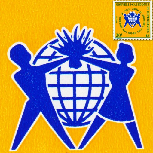 Znaczek upamiętniający dziesięciolecie istnienia Centralnego Urzędu ds. Kooperacji w Szkołach w Nowej Kaledonii.