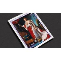 Na znaczku widnieje reprodukcja obrazu „Napoleon w Szatach Koronacyjnych” z 1805 roku francuskiego malarza Françoisa Gerarda.