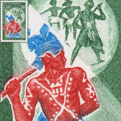 Na znaczku widnieją tancerze wykonujący tradycyjny taniec Melanezyjczyków.
