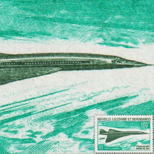 Znaczek upamiętniający pierwszy lot samolotu Concorde.