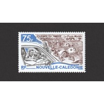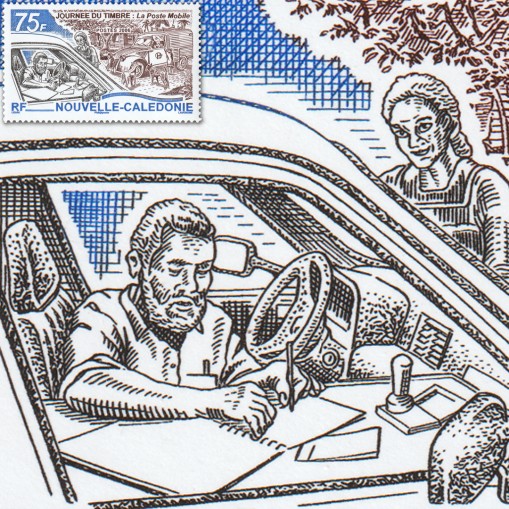 Znaczek wydany na dzień znaczka, przedstawiający ruchomy (samochodowy) urząd pocztowy dawniej i dziś.