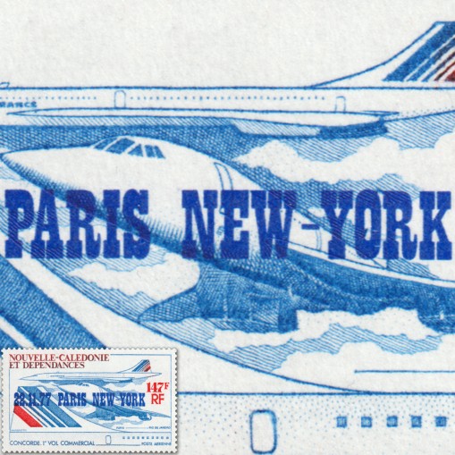 Znaczek upamiętniający pierwszy lot pasażerski samolotu Concorde na trasie Paryż - Nowy Jork.