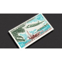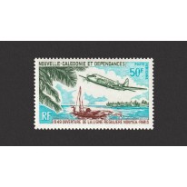 Znaczek upamiętniający 20. rocznicę lotów pomiędzy Paryżem z Numeą. Widnieje na nim samolot Douglas DC-4 ponad tradycyjną łodzią.