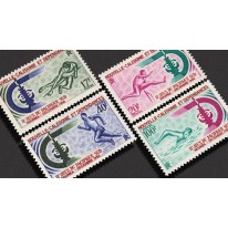 Na znaczkach przedstawiono: skok wzwyż, bieg z przeszkodami, bieg i pływanie.