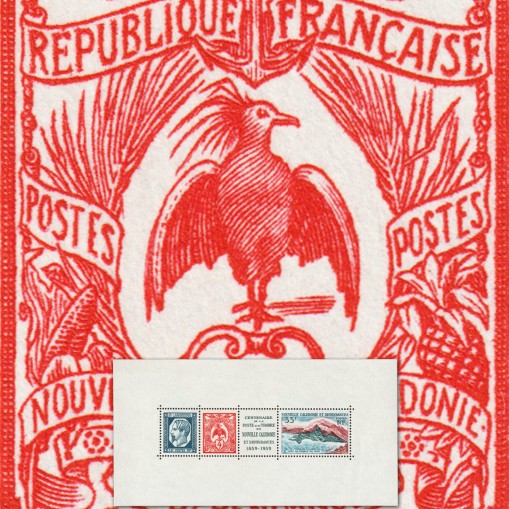 Blok wydany z okazji stulecia usług pocztowych w Nowej Kaledonii.