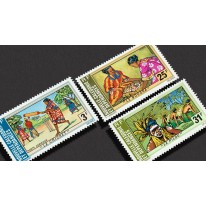 Znaczki promujące turystykę Nowej Kaledonii. Widnieją na nich kolejno: