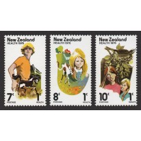 Na znaczkach widnieją dzieci z kucykiem, cielakiem i ptakiem.