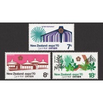 Na znaczkach widnieją kolejno: budynek nowozelandzkiej restauracji Geyser, pawilon Nowej Zelandii i ścieżka dydaktyczna prezentująca nowozelandzką przyrodę.