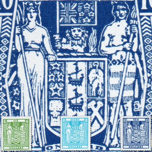 Znaczki urzędowe, na których widnieje herb Nowej Zelandii.