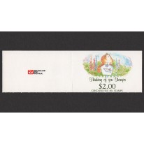 Znaczki w zeszyciku filatelistycznym, na których widnieje kot czekający w domu i napis „Thinking of You” („Myślę o Tobie”).