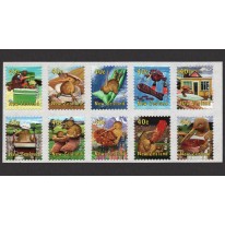 Znaczki samoprzylepne w arkuszu, na których widnieją produkty charakterystyczne dla Nowej Zelandii i składające się na poczucie odrębności i tożsamość narodową Nowozelandczyków. Rzeczy takie określane są mianem „kiwiana”, często pochodzą z popkultury połowy XX. wieku i nie stronią od kiczu.