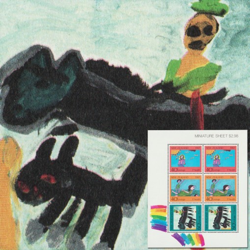 Na znaczkach widnieją rysunki dzieci przedstawiające dziewczynkę puszczającą latawce, pływanie i jazdę konną.