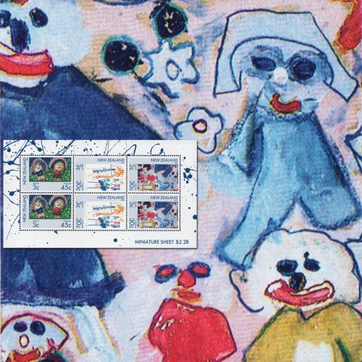 Na znaczkach widnieją rysunki dzieci przedstawiające mecz piłkarski, bawiące się dzieci i dziewczynki skaczące na skakankach.