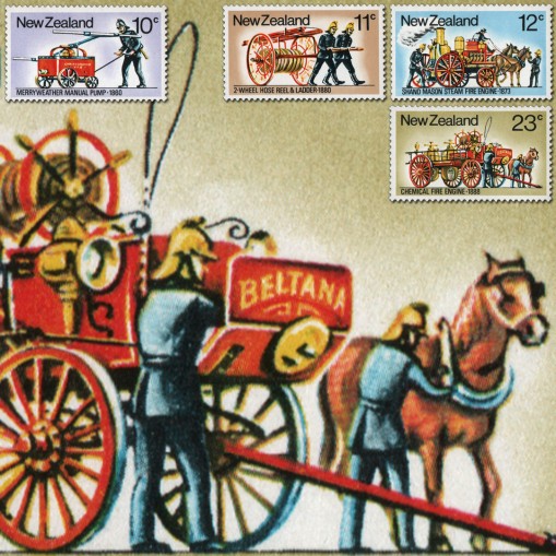 Na znaczkach widnieją wczesne wozy strażackie z lat 1860-1888.