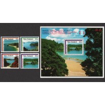 Seria i blok ukazujące piękne miejsca na nowozelandzkim wybrzeżu: Knights Point, Becks Bay, Doubtless Bay i Wainui Bay. Blok upamiętnia jednocześnie światową wystawę filatelistyczną w Auckland.