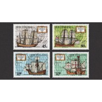 Na znaczkach widnieją żaglowce floty Tasmana „Heemskerck” i „Zeehaen” oraz żaglowce floty Kolumba „Santa Maria” oraz „Pinta” i „Nina”.
