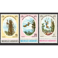 Na znaczkach przedstawiono rytuał mężczyzn z Wyspy Pentecost w Vanuatu, w którym skaczą oni z 20-30 metrowych drewnianych wież z dwoma pnączami przywiązanymi do kostek. Tradycja ta przerodziła się w późniejszych latach w atrakcję turystyczną. Według Księgi Rekordów Guinnessa przeciążenie, jakiego skoczkowie doświadczają w najniższym punkcie skoku jest największym doświadczanym przez człowieka w świecie pre-industrialnym.