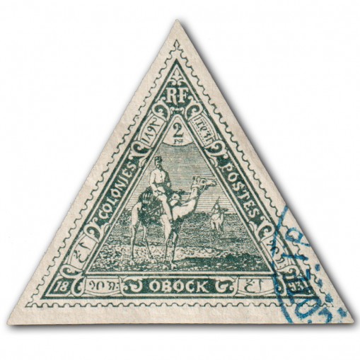 Obiegowy znaczek pocztowy, wydany w Obock w 1893 roku.
