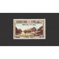 Znaczek z serii obiegowej, na którym widnieje reprodukcja obrazu przedstawiającego port w Maskacie, stolicy Omanu.