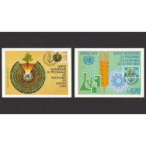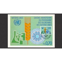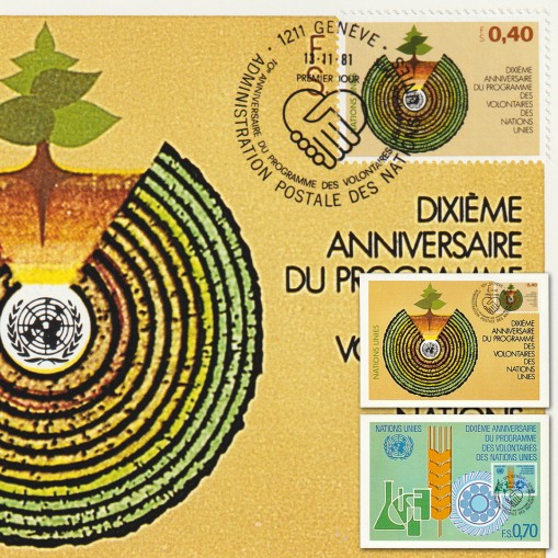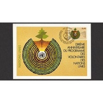 Znaczki na kartach maksimum upamiętniające 10. rocznicę powstania programu wolontariuszy ONZ.