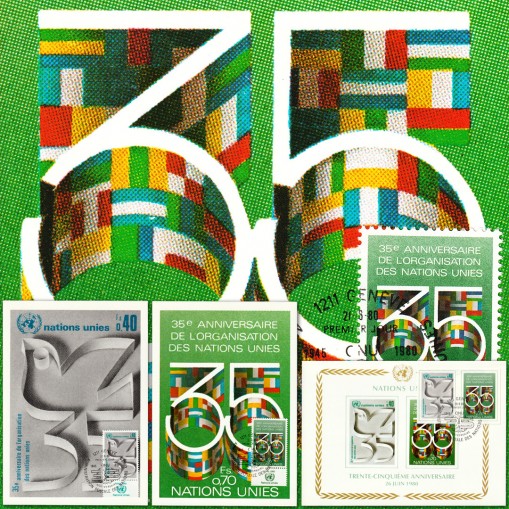 Znaczki upamiętniające 35-lecie Organizacji Narodów Zjednoczonych.