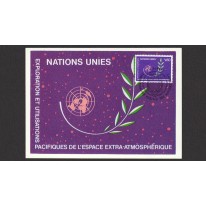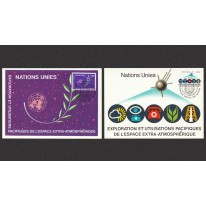 Znaczki na kartach maksimum upamiętniające drugą konferencję Organizacji Narodów Zjednoczonych na temat eksploracji i pokojowego wykorzystania przestrzeni kosmicznej UNISPACE'82 we Wiedniu.