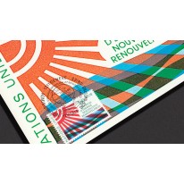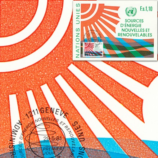 Na znaczku i karcie przedstawiono słońce i wodę oraz logo konferencji energetycznej ONZ.