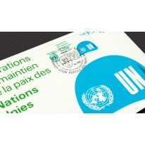 Na znaczku i karcie widnieje hełm z logo ONZ.
