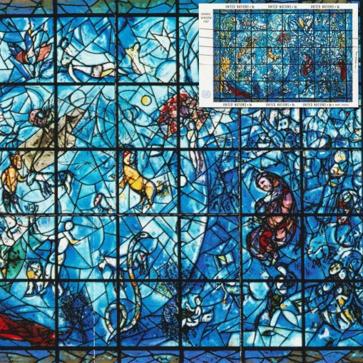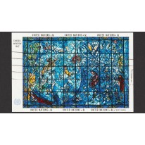 Na znaczkach w bloku kasowanym grzecznościowo przedstawiono fragmenty witraża Marca Chagalla „Okno Pokoju” znajdującego się w budynku sekretariatu Organizacji Narodów Zjednoczonych w Nowym Jorku.