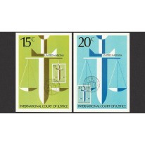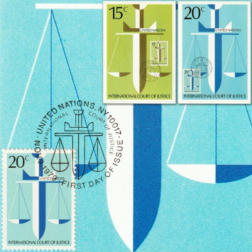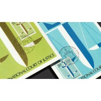 Znaczki promujące pracę Międzynarodowego Trybunału Sprawiedliwości.