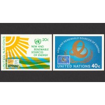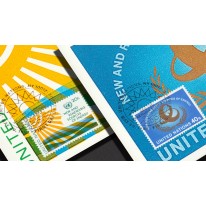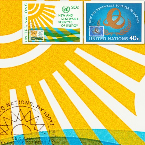 Na znaczkach i kartach przedstawiono słońce i wodę oraz logo konferencji energetycznej ONZ.