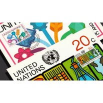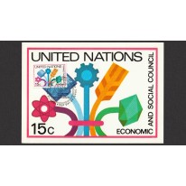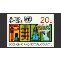 Znaczki promujące działania Rady Gospodarczej i Społecznej, jednego z sześciu organów głównych Organizacji Narodów Zjednoczonych.