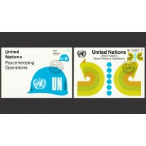 Znaczki promujące działania Organizacji Narodów Zjednoczonych na rzecz utrzymania pokoju na świecie.