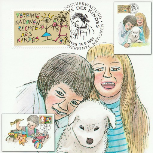 Znaczki na kartach maksimum upamiętniające 30. rocznicę uchwalenia deklaracji praw dziecka (przypadającą na rok 1989) oraz konferencję na temat praw dziecka, która odbyła się w Nowym Jorku w 1990 roku.