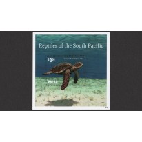 Znaczek w bloku, na którym widnieje żółw jadalny.