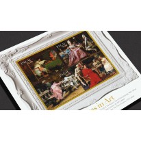 Na znaczkach widnieją przedstawienia gry w szachy w malarstwie, kolejno: